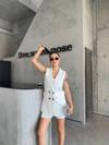 KETEN YELEK - ŞORT TAKIM - Beyaz