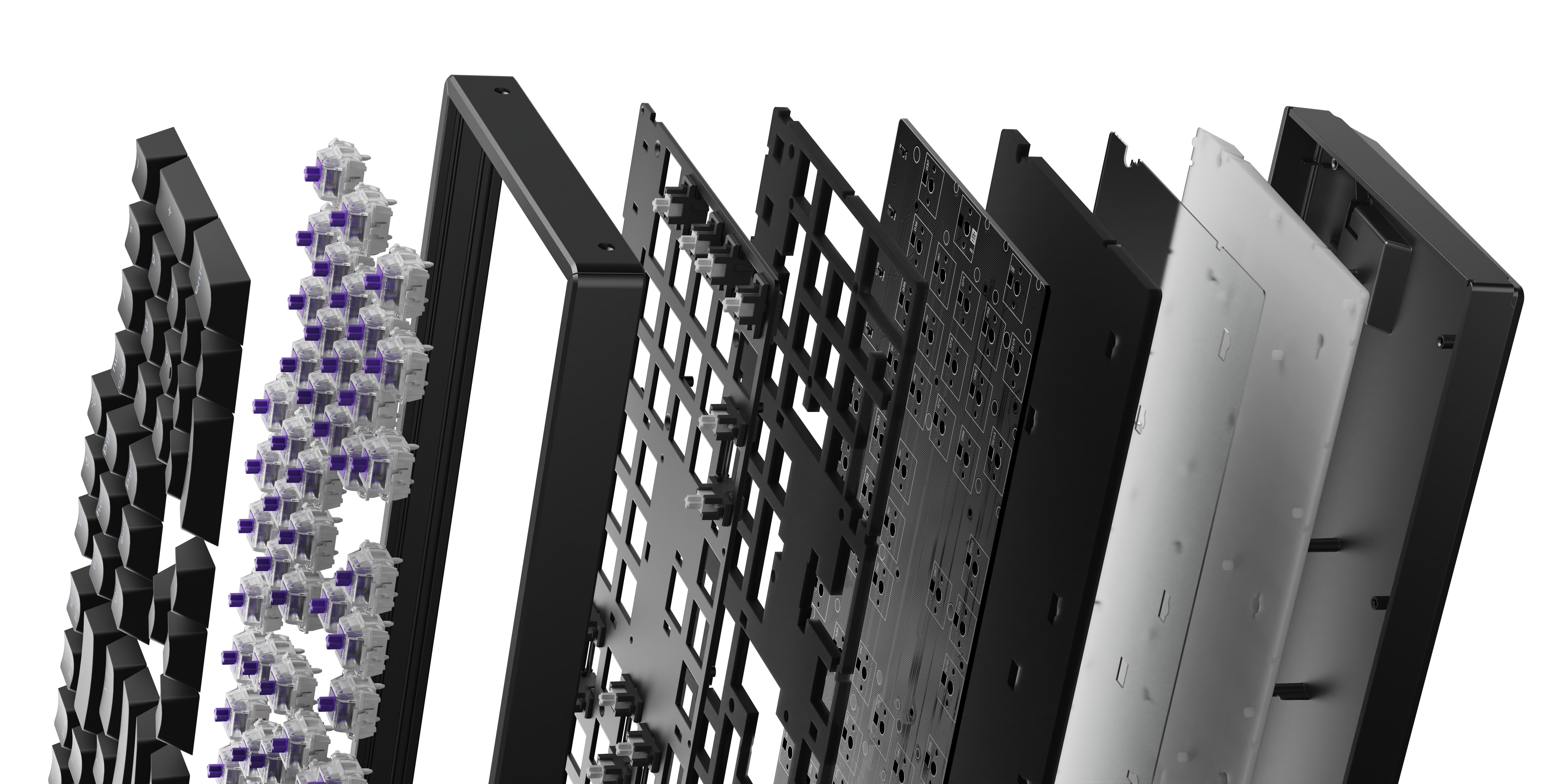 Standart Versiyon, Cherry profilli çift atışlı parlak PBT tuş kapakları ve alüminyum çerçeveler içerir.