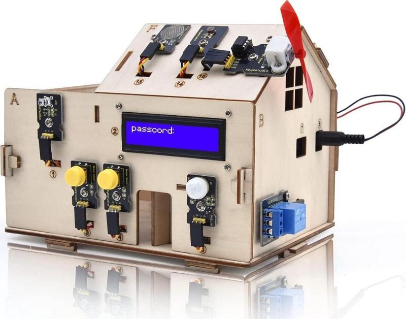 KEYESTUDIO Smart Home Starter Kit for Arduino for Uno R3, Electronics Home Automation Coding Kit, Wooden House DIY Sensor Kit STEM Set for Adults Teens 15+
