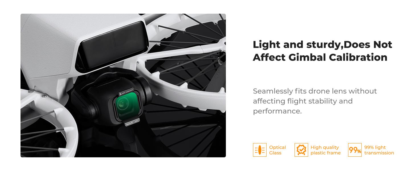 - * 【Gimbal Güvenli】Bu filtreler, dronun gimbal performansını etkilemeyeceklerinden emin olmak için sıkı ağırlık testlerinden geçirilmiştir. Drone'un uçuş stabilitesini korurken çekimlerinizi endişesizce yapın.
