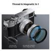 - Filtre ön çerçeve kalibresi manyetiktir ve daha çok yönlü senaryolara olanak sağlamak için K&F CONCEPT 52mm manyetik filtrelerle istiflenebilir ve orijinal lens kapağının kullanımını etkilemez.