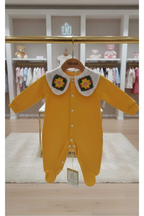 Kidzes Çiçek Örgü Yakalı Patikli Tulum Kız Bebek