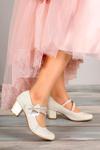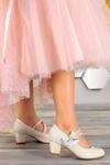 750 Simli Günlük Kız Çocuk 4 Cm Topuklu Babet Ayakkabı Sedef