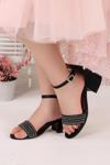 761 Çatlak Günlük Kız Çocuk 3 Cm Topuklu Sandalet Ayakkabı Siyah