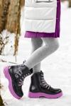 Kiko Kids Termo Taban Kız Çocuk Bot 610 Çatlak Siyah - Lila