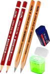 Ürün Adı: Kılavuz Dik Çizgili Güzel Yazı Defteri A4 Büyük Boy Fatih Kırmızı ve Siyah Jumbo Kurşun Kalem Sınav Silgisi Kalemtraş