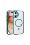 Kılıftech Apple İphone 16 Plus Kılıf Wireless Şarj Özellikli Zore Krom Magsafe Silikon Kapak-Yeşil