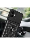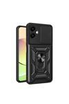 Kılıftech Galaxy A06 Uyumlu Magnetik Standlı Kamera Korumalı Zore Sürgülü Vega Kapak-Siyah