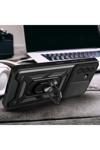 Kılıftech Galaxy A36 Kılıf Magnetik Standlı Kamera Korumalı Zore Sürgülü Vega Kapak - Siyah