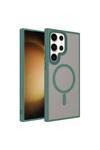 Kılıftech Galaxy S23 Ultra Uyumlu Mat Arka Yüzey Wireless Şarj Özellikli Zore Flet Magsafe Kılıf-Yeşil