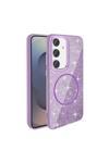Kılıftech Galaxy S24 Fe Kılıf Magsafe Şarj Özellikli Parlayan Simli Zore Okso Kapak - Pembe