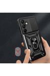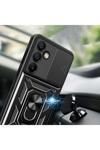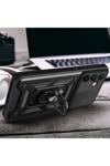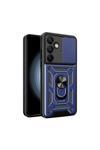 Kılıftech Galaxy S24 Fe Uyumlu Magnetik Standlı Kamera Korumalı Zore Sürgülü Vega Kapak-Mavi