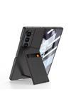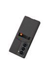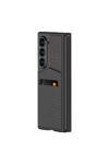 Kılıftech Galaxy Z Fold 6 Kılıf Karbon Fiber Kartlıklı Zore Kıpta Dik Açılan Kartlıklı Kapak-Siyah