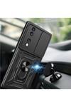 Kılıftech Honor 70 Uyumlu Kılıf Magnetik Standlı Kamera Korumalı Zore Sürgülü Vega Kapak-Siyah