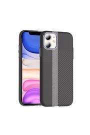 Kılıftech İphone 11 Kılıf Magsafe Şarj Özellikli Karbon Fiber Görünümlü Kth Gros Kapak - Gri-Siyah