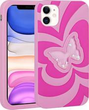 Kılıftech İphone 11 Uyumlu Sıvılı Simli Kelebekli Tasarım Zore Vodena Kılıf-Pembe Koyu