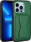 Kılıftech İphone 12 Pro Max Uyumlu Kartlıklı Standlı Pu Deri Zore Memo Kılıf-Koyu Yeşil