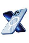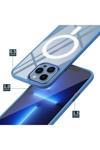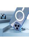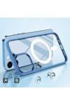 Kılıftech İphone 12 Pro Uyumlu Wireless Şarj Özellikli Zore Krom Magsafe Silikon Kılıf-Lacivert