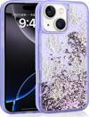 Kılıftech İphone 13 Uyumlu Kılıf Sıvılı Simli Kelebek Baskılı Şeffaf Arka Yüzey Zore Glis Silikon Kapak-Mor