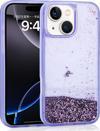 Kılıftech İphone 13 Uyumlu Kılıf Sıvılı Simli Şeffaf Arka Yüzey Zore Keto Silikon Kapak-Mor