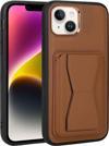 Kılıftech İphone 14 Plus Uyumlu Kartlıklı Standlı Pu Deri Zore Memo Kılıf-Kahverengi
