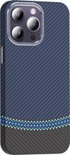 Kılıftech İphone 14 Pro Max Kılıf Magsafe Şarj Özellikli Karbon Fiber Görünümlü Kth Gros Kapak - Lacivert