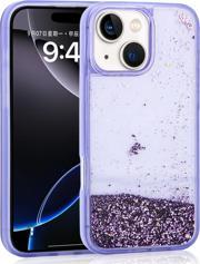 Kılıftech İphone 14 Uyumlu Kılıf Sıvılı Simli Şeffaf Arka Yüzey Zore Keto Silikon Kapak-Mor