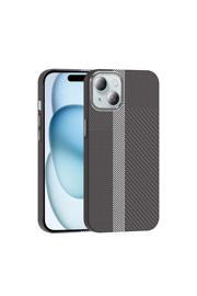 Kılıftech İphone 15 Kılıf Magsafe Şarj Özellikli Karbon Fiber Görünümlü Kth Gros Kapak - Gri-Siyah