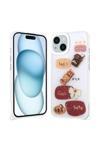 Kılıftech İphone 15 Plus Kılıf Parlayan Sıvılı Simli Kabartma Figürlü Zore Cevze Kapak-Beyaz