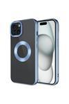 Kılıftech İphone 15 Plus Uyumlu Tek Kamera Çerçeveli Logo Gösteren Omega Kılıf-Sierra Mavi