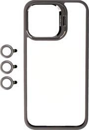 Kılıftech İphone 15 Pro Max Uyumlu Kamera Lzore Korumalı Standlı Zore Klon Lnsm-Li Kılıf-Gri