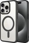Kılıftech İphone 15 Pro Max Uyumlu Wireless Şarj Özellikli Sert Pc Zore Mat Riksos Magsafe Kılıf-Siyah