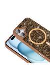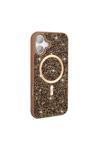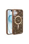 Kılıftech İphone 16 Plus Kılıf Pırlanta Tasarımlı Magsafe Şarj Özellikli Zore Mozaik Silikon Kapak - Desert Ti