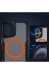Kılıftech İphone 16 Plus Uyumlu Magsafe Şarj Özellikli Renkli Kenar Airbag Şeritli Zore Lamer Kapak-Siyah