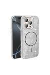 Kılıftech İphone 16 Pro Kılıf Magsafe Şarj Özellikli Parlayan Simli Zore Okso Kapak - Beyaz
