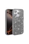 Kılıftech İphone 16 Pro Kılıf Parlak Taşlı Tasarım Zore Pırlanta Kapak - Gri