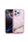 Kılıftech İphone 16 Pro Uyumlu Kılıf Sıvılı Simli Kelebek Baskılı Şeffaf Arka Yüzey Zore Glis Silikon Kapak-Pe