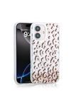 Kılıftech İphone 16 Uyumlu Kılıf Sıvılı Simli Baskılı Şeffaf Arka Yüzey Zore Mossa Silikon Kapak-Pembe
