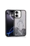 Kılıftech İphone 16 Uyumlu Kılıf Sıvılı Simli Şeffaf Arka Yüzey Zore Keto Silikon Kapak-Siyah