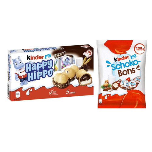 - İçerik: 1 Adet Kinder Happy Hippo (5'li Gofret) + 1 Adet Kinder Schoko Bons (125 Gr)