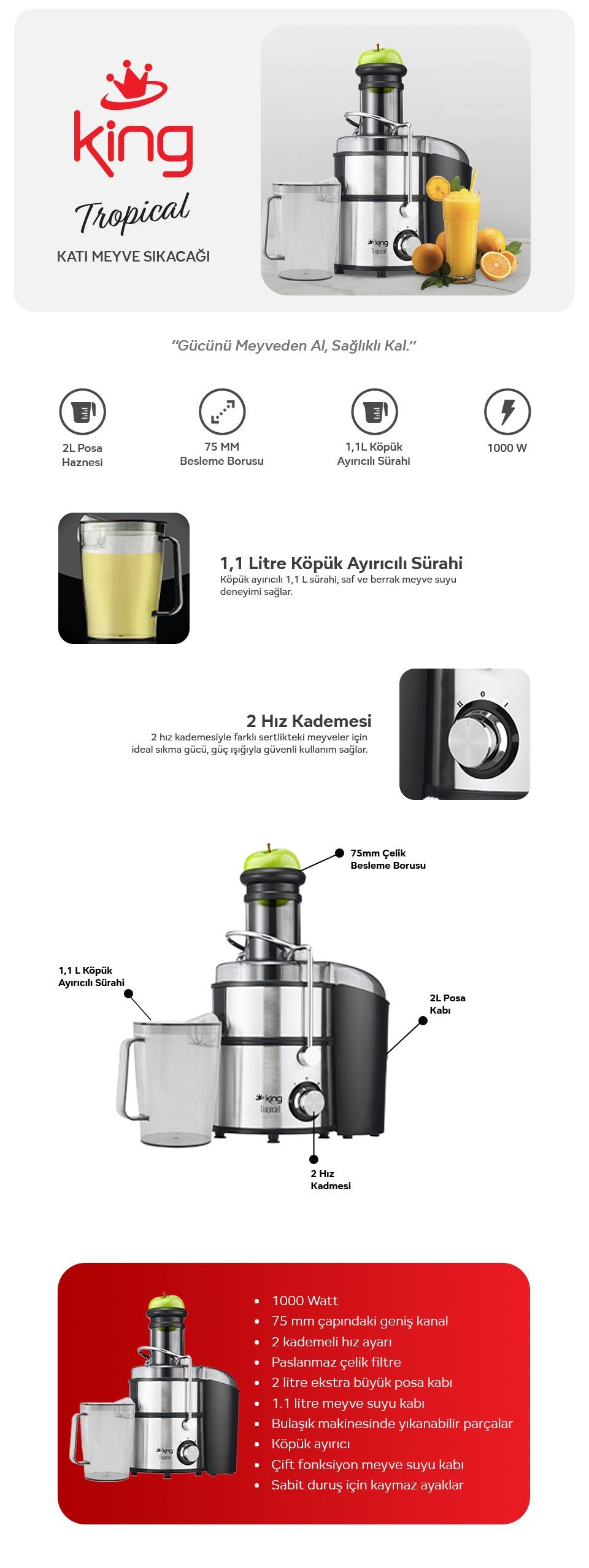 King KKM 1170 Tropical 1000 W Katı Meyve Sıkacağı