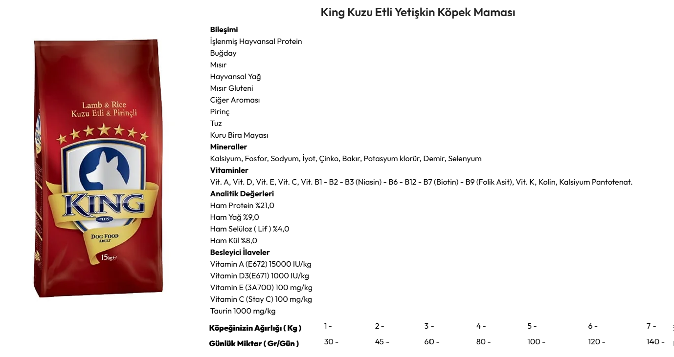 King Kuzu Etli Yetişkin Köpek Maması 15 Kg
