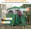 İkili Duş Çadırı, Tuvalet Çadırı, Portatif Duş Çadırı veya özel bir dinlenme alanı olarak kullanım imkanı sunar. Kamp, karavan tatili, plaj, trekking ve açık hava etkinlikleri için ideal bir üründür.