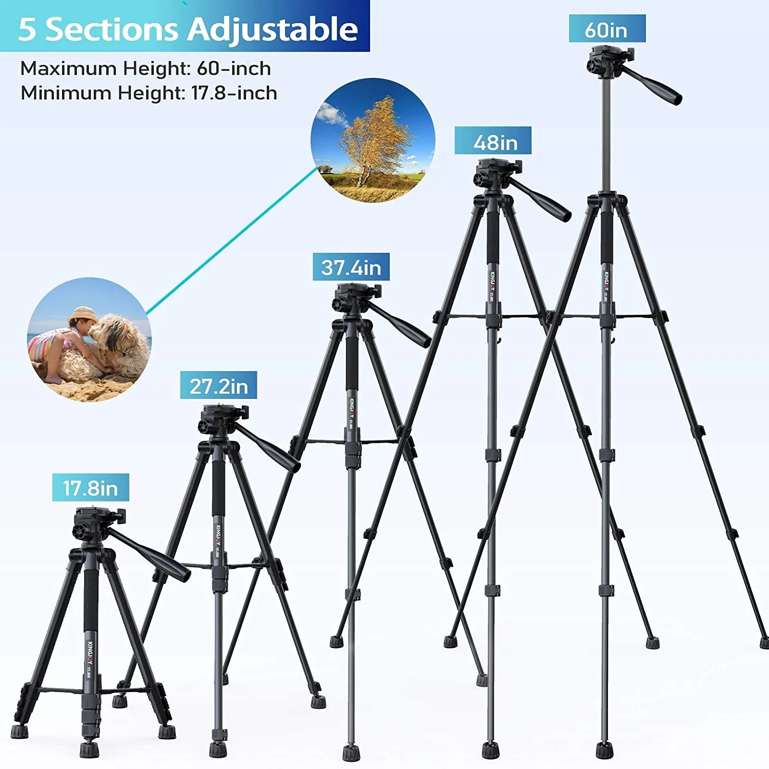 Kamera tripodu önlemler 17.8 ”ve genişletilebilir stand 60'a kadar“. Yükseklik, fotoçekimi tamamlamanızı çok kolay hale getirebilir.