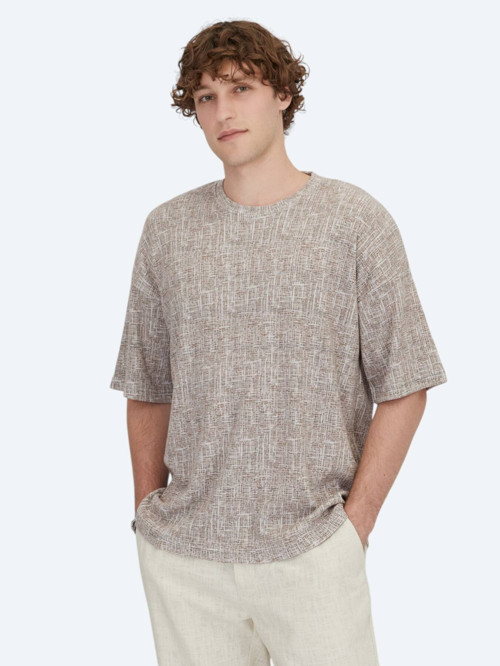 Kip Antrasit Baskılı Bisiklet Yaka Pamuk Karışımlı T-Shirt