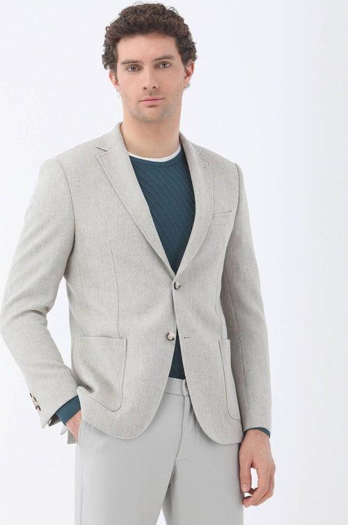Ceket; Desen: Çizgili; Line: Casual; Yaka: Kelebek Yaka; Fit: Modern Fit; Yırtmaç: Çift Yırtmaç İç Astar: Yarım Astarlı Çalışma Tipi: Soft Cep: Torba Cep Karışım: %49 Polyester, %24 Yün, %16 Viskon, %8 Polyamid, %3 Elastan