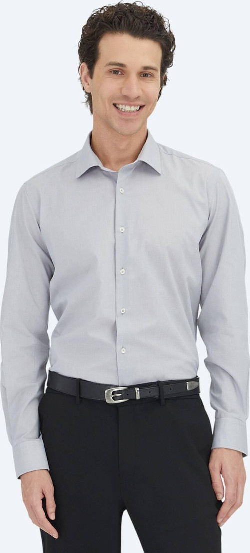 Kip Gri Regular Fit Dokuma Klasik Pamuk Karışımlı Gömlek
