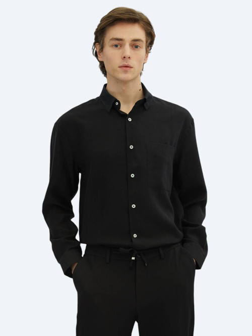 Kip Siyah Düz Oversize Fit Dokuma Casual Gömlek