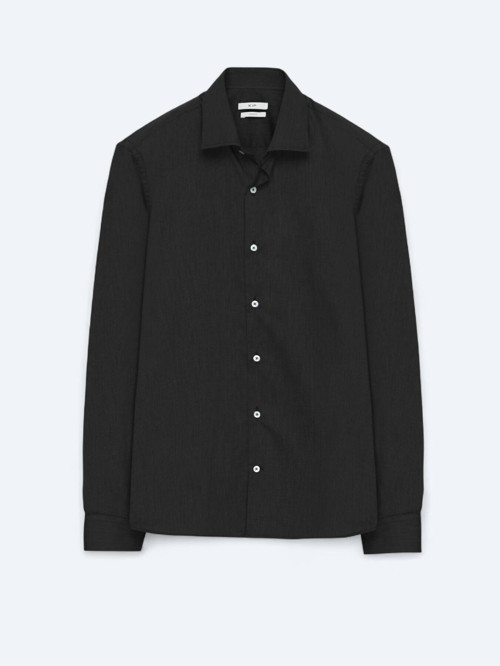 Kip Siyah Regular Fit Dokuma Klasik Pamuk Karışımlı Gömlek