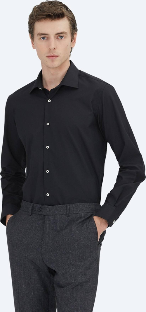 Kip Siyah Regular Fit Dokuma Klasik Pamuk Karışımlı Gömlek